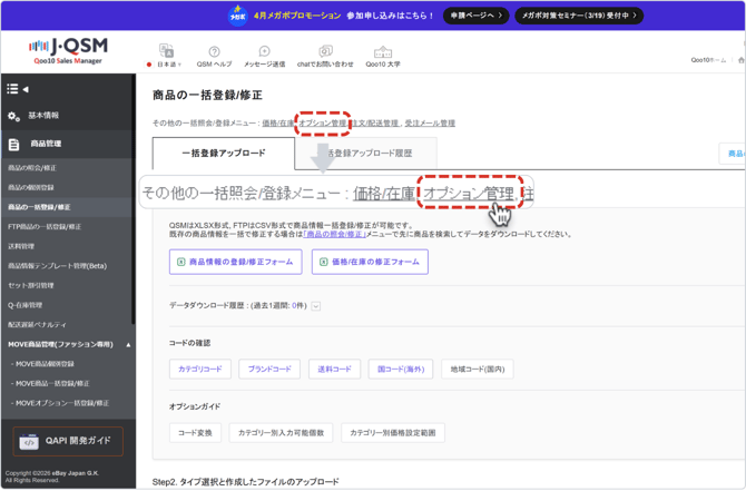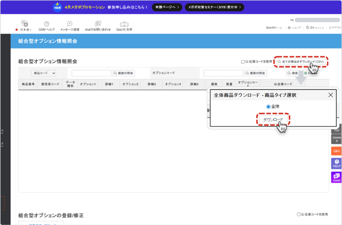 Qoo10管理画面からダウンロードできるデータより商品連携を登録する手順を説明します。