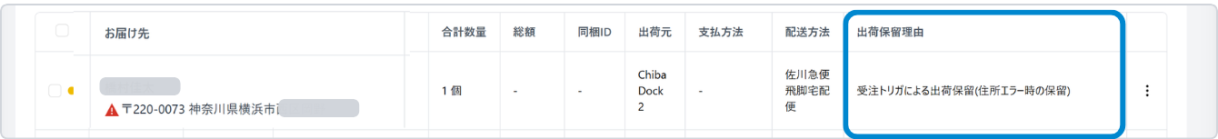 - 住所エラーのまま保留を解除した場合、エラーマークは残ります。
