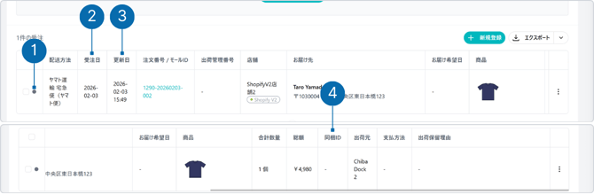 ④ 同梱ID同梱された受注は同梱IDが表示されます。