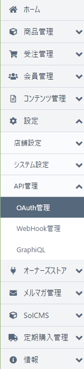 - サイドメニューの設定>API管理>OAuth管理に移動します。
