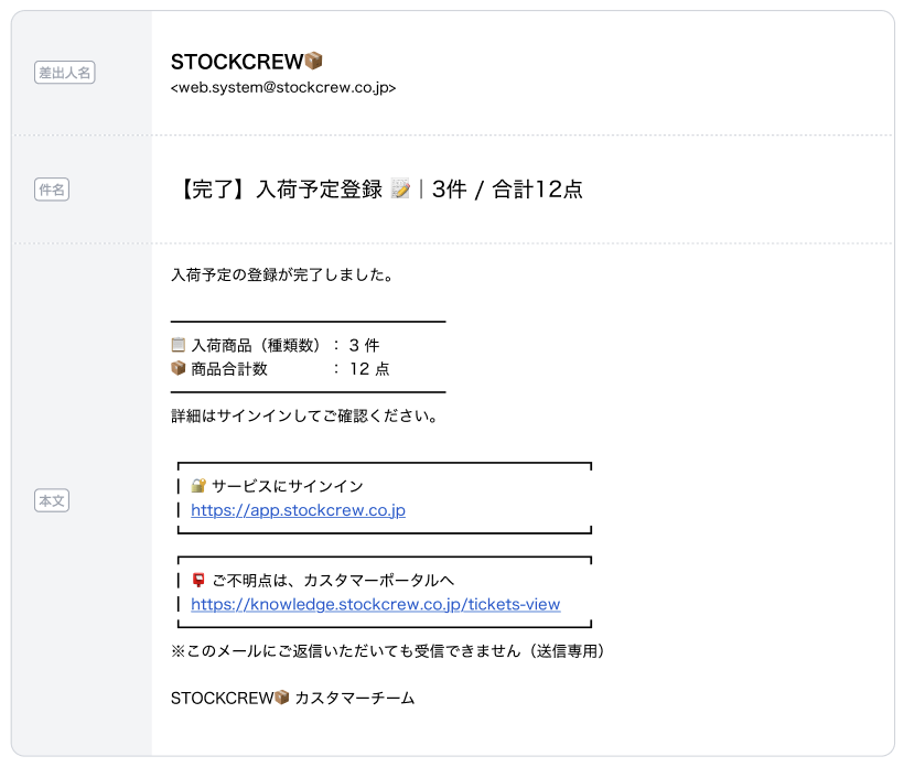 入荷予定登録を行った場合に配信 |