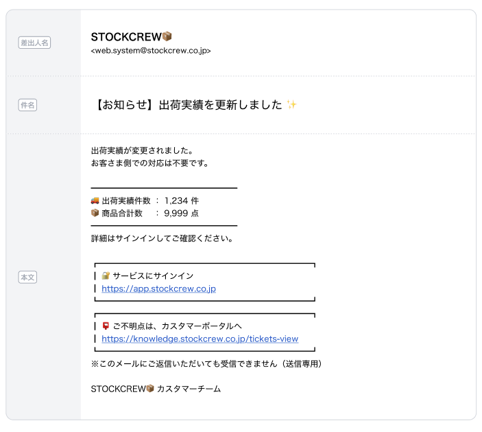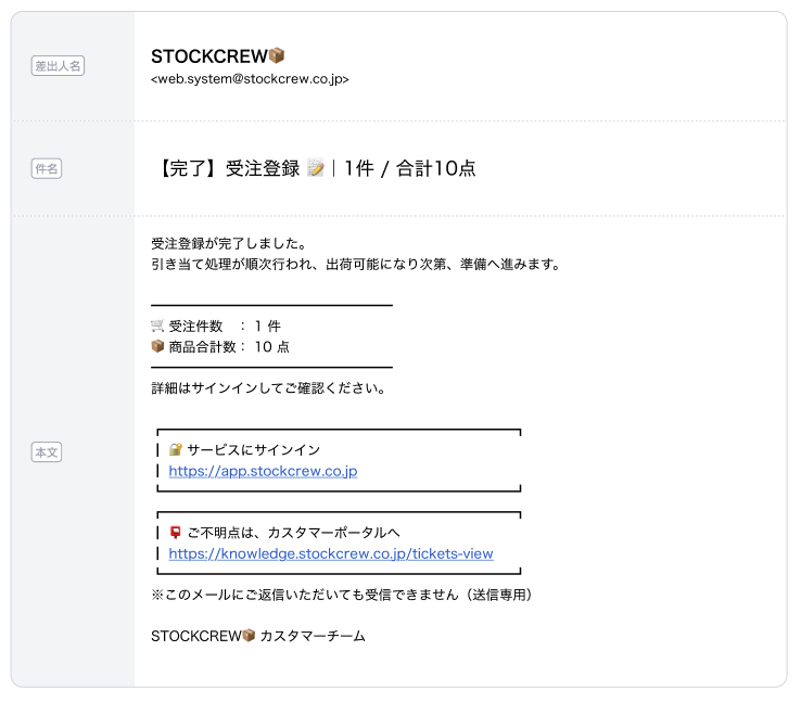 | 件名 | タイミング | 本文(抜粋) | 補足 |