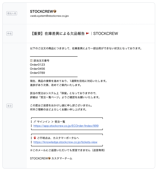 【重要】在庫差異による欠品報告 | STOCKCREW |
