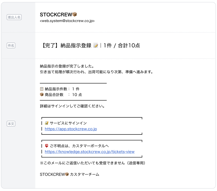 納品指示登録を行った場合に配信 |